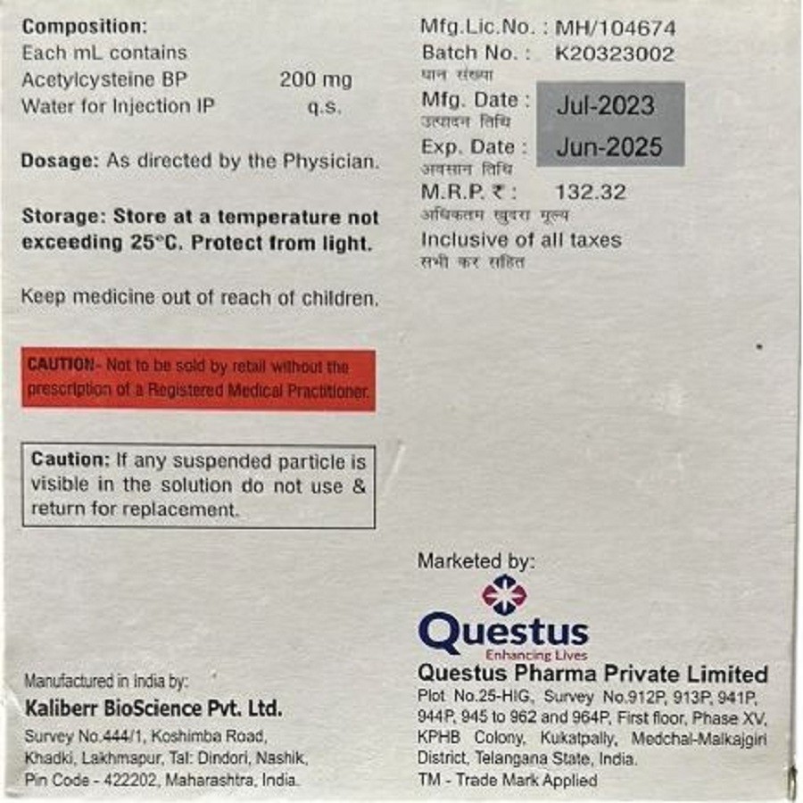 Qystein 1000mg Injection is an antidote for paracetamol poisoning. It